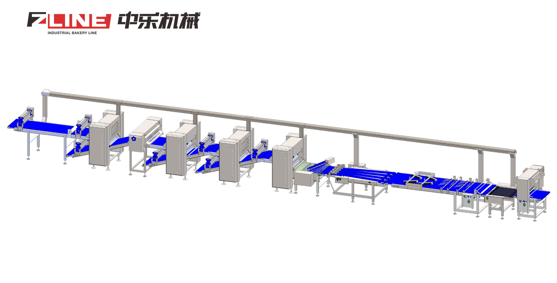 Les lignes de production de pointe de notre société ZLINE comprennent une ligne de laminage de pain plat, un aérateur automatique de pâte à gâteau, une ligne de fabrication de pâtisseries et une ligne de laminage de pâtes. Cette ligne de fabrication de pain présente les avantages suivants : mélange libre, modularité, outil de formage flexible et capacité de production d'une grande variété de produits de boulangerie. Comment fonctionne-t-elle ? Par exemple, la ligne de fabrication de pain peut être commandée et farinée automatiquement. Après plusieurs postes de réduction d'épaisseur et autres composants, la ligne de production de pain effectue le balayage, la division, la découpe, le remplissage, etc., avant de former, plier, couper et aligner la pâte dans des barquettes pour l'étape suivante.La caractéristique de cette ligne de production est qu'elle prend en charge des machines personnalisées, de la capacité de production à la taille du produit de production. Nous fournissons non seulement une ligne de production de boulangerie, mais également une solution.