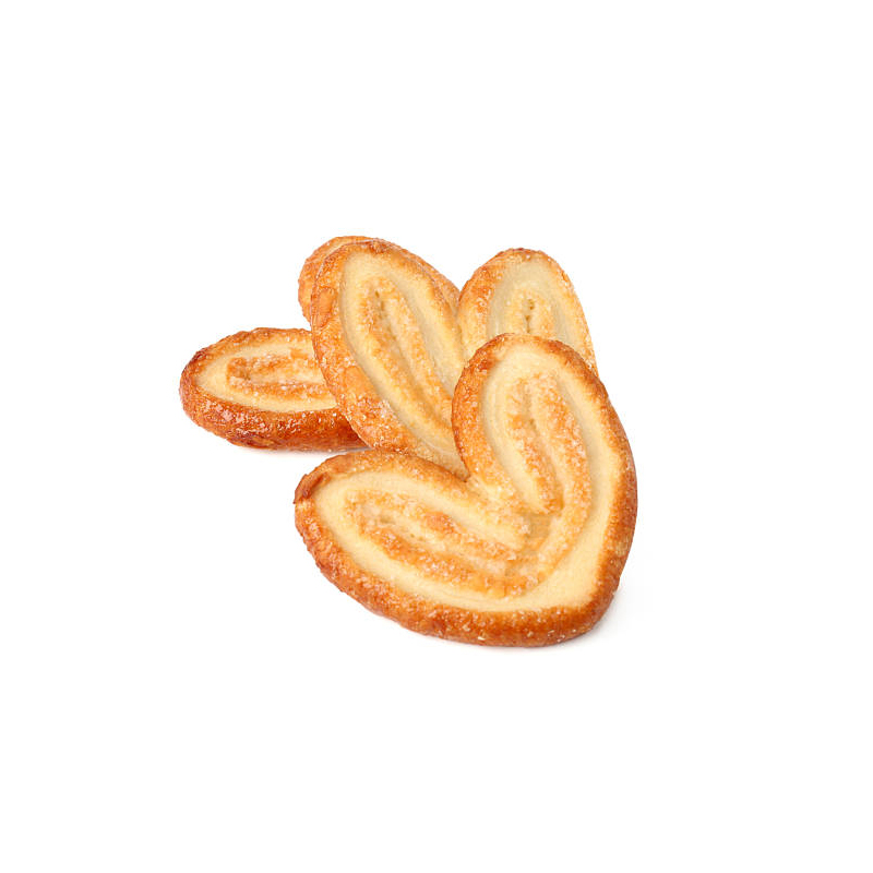 Cette ligne est principalement utilisée pour la préparation de pains semi-finis. Le rapport pâte/beurre est ajusté selon les besoins du client. Hautement performante et certifiée CE, elle découpe, enroule et façonne automatiquement des feuilles de pâte pré-laminées pour former avec précision le palmier papillon emblématique. Grâce à une feuilletage stable et à des paramètres ajustables selon les recettes du client, les palmiers semi-finis sont parfaits pour la congélation ou la cuisson directe. Cette solution est idéale pour les boulangeries industrielles en quête d'efficacité, de flexibilité et de qualité.